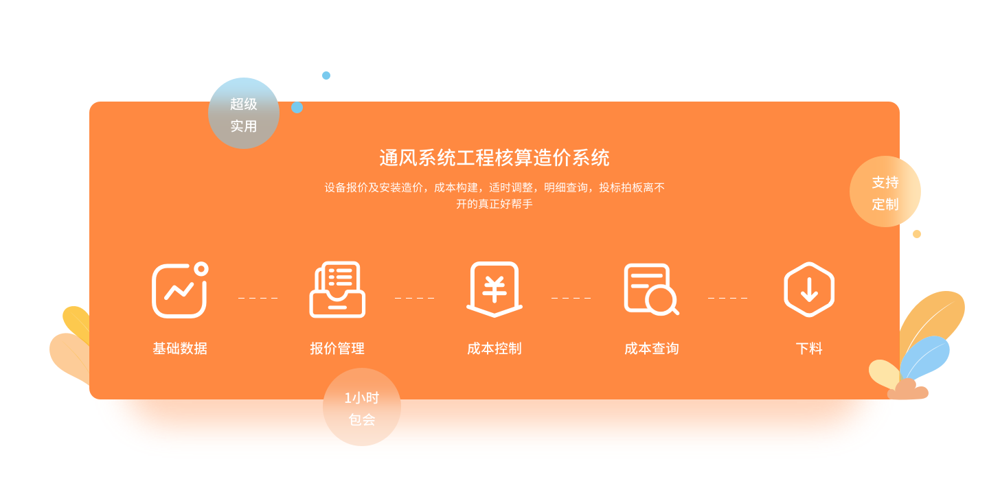 包括風(fēng)機(jī)閥風(fēng)口簡(jiǎn)易報(bào)價(jià)、風(fēng)機(jī)閥風(fēng)口成本核算報(bào)價(jià)、通風(fēng)管道安裝成本核算報(bào)價(jià)、風(fēng)口噴塑計(jì)算報(bào)價(jià)、盤(pán)管柜機(jī)成本核算報(bào)價(jià)、組合式空調(diào)機(jī)組核算報(bào)價(jià)、表冷器成本核算報(bào)價(jià)等軟件。